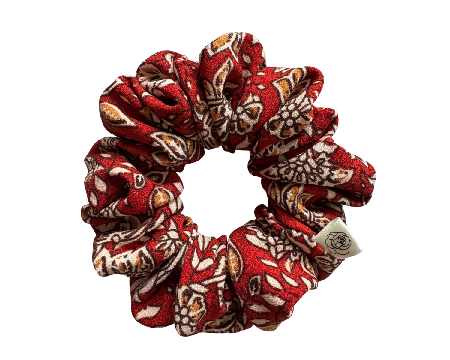 Bring warmth and timeless elegance to your hairstyle with the Classic Rose – Autumn Ember scrunchie. Made from soft, durable polyester, this floral scrunchie features a rich palette of brick red, rusty orange, creamy accents, and hints of dark brown — a perfect nod to the cozy colors of fall.