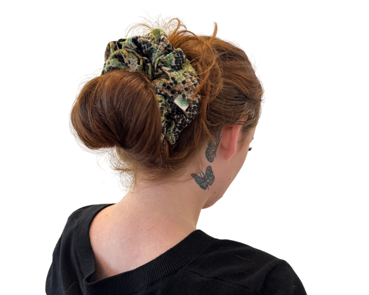 Add a touch of elegance to your hairstyle with our Lush XXL Emerald Mosaic scrunchie. Made from polyester satin, this oversized scrunchie is soft, smooth, and lightweight, giving your hair a gentle lift without tugging. Its rich emerald hues and intricate mosaic-inspired pattern create a vibrant, luxurious look—perfect for everyday wear or special occasions.